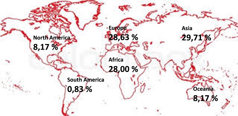 Attendees by Continent 2012-2016 (excluding host country) (%)