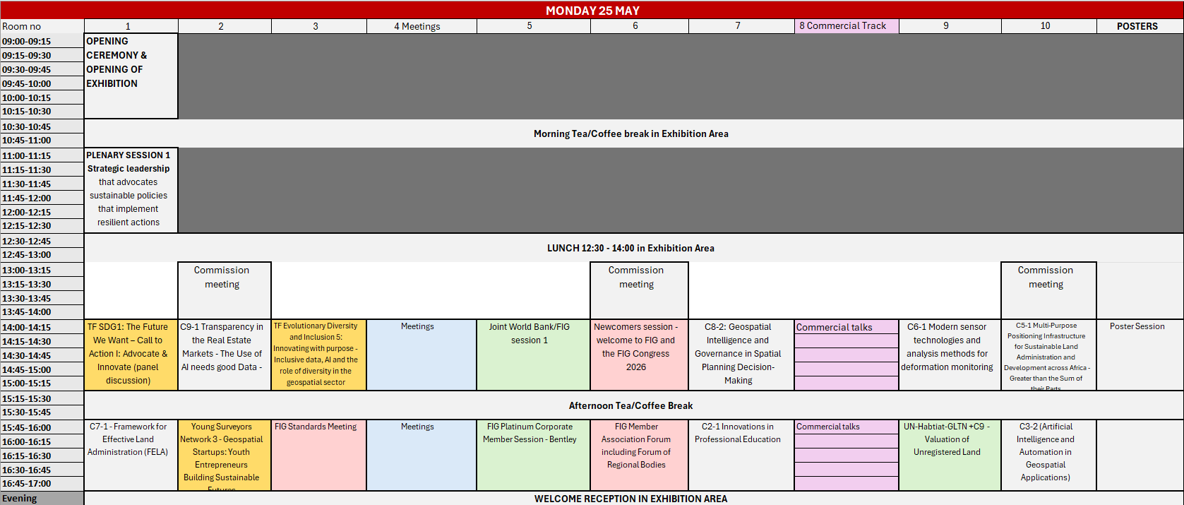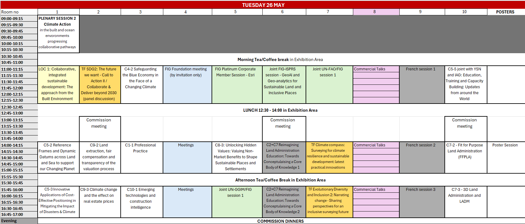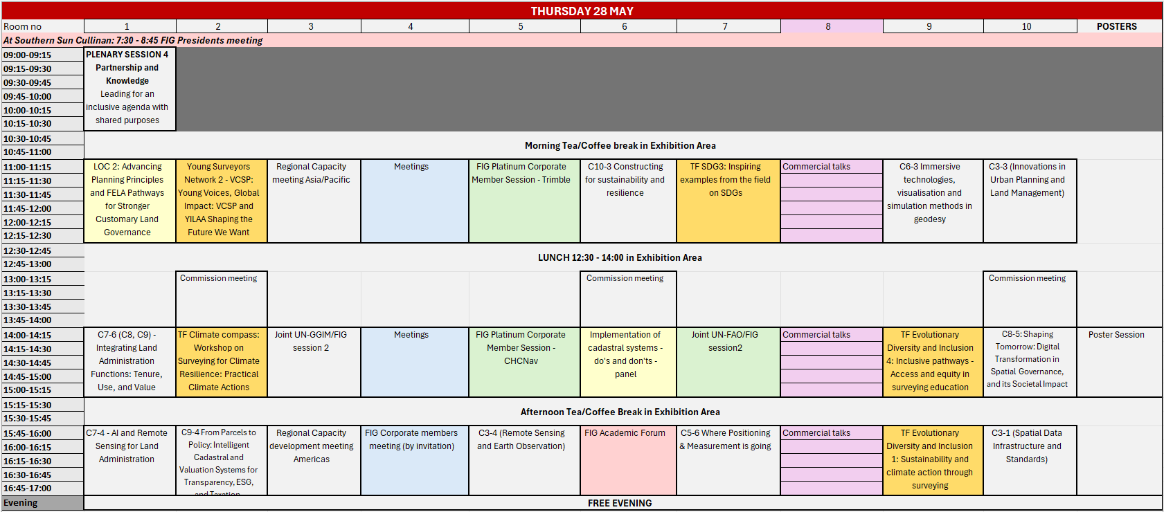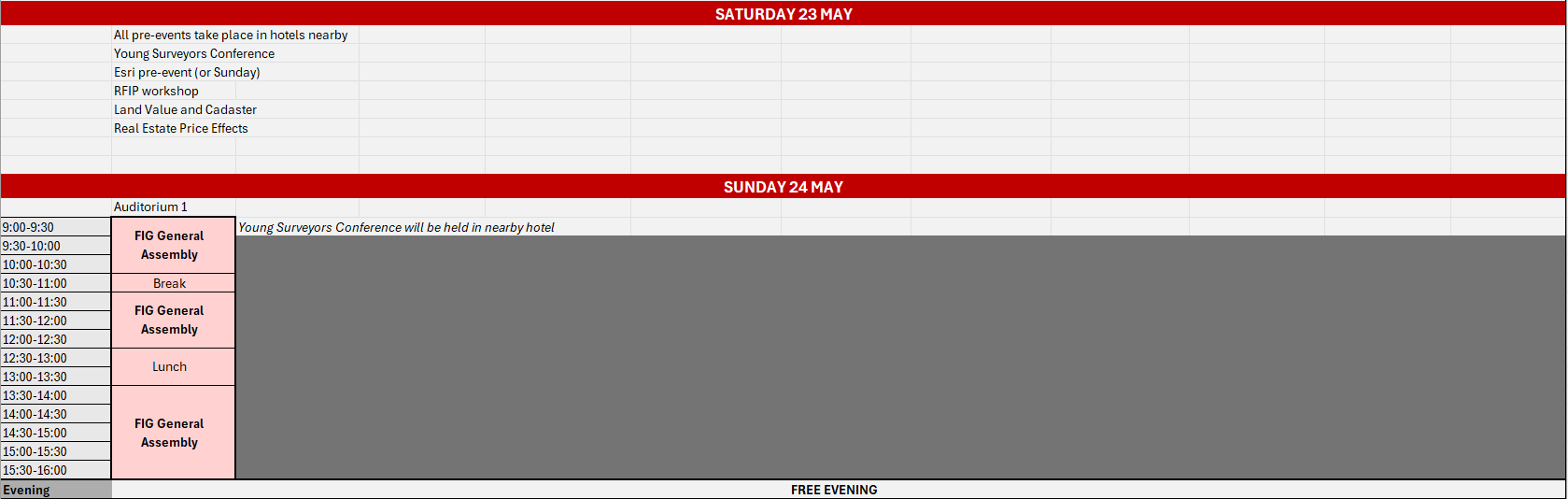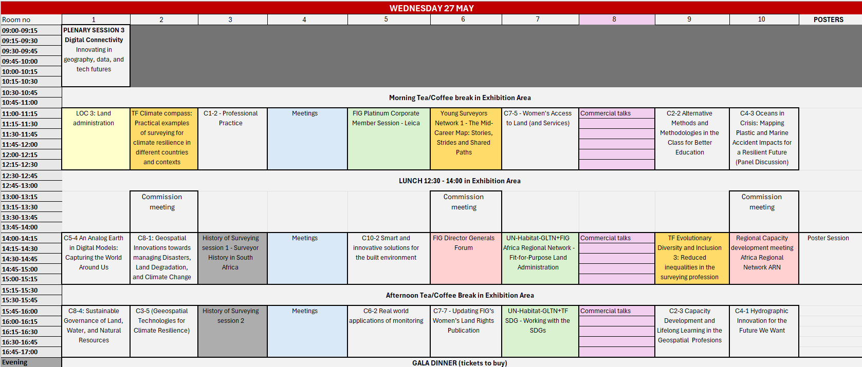 Evenings     Welcome Reception FIG Commission Dinners Gala Dinner
